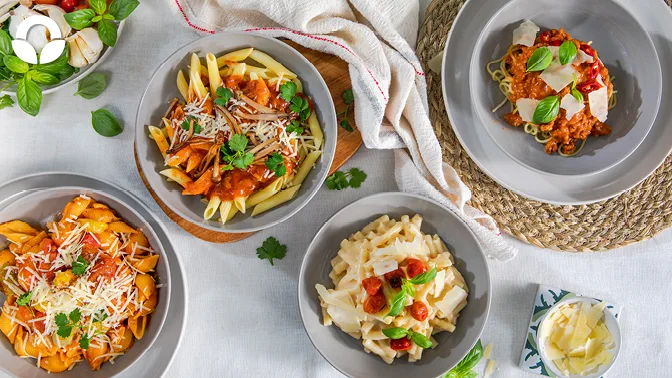 4 Easy Winter Warmers in Minutes is a collection of quick and comforting pasta dishes that are perfect for chilly days. With minimal prep and cooking time, these recipes offer delicious and satisfying meals in just 25 minutes. From the classic Bolognaise with spaghetti and beef mince to the creamy Macaroni Cheese with roasted cherry tomatoes, each dish is bursting with flavours. The Tomato and Mushroom pasta features penne pasta with a savoury sauce and fried exotic mushrooms, while the Tomato and Basil dish combines conchiglie pasta with a flavourful tomato and basil sauce, garnished with roasted cherry tomatoes. These winter warmers are topped with shaved or grated Parmesan and fresh herbs for a delightful finishing touch.