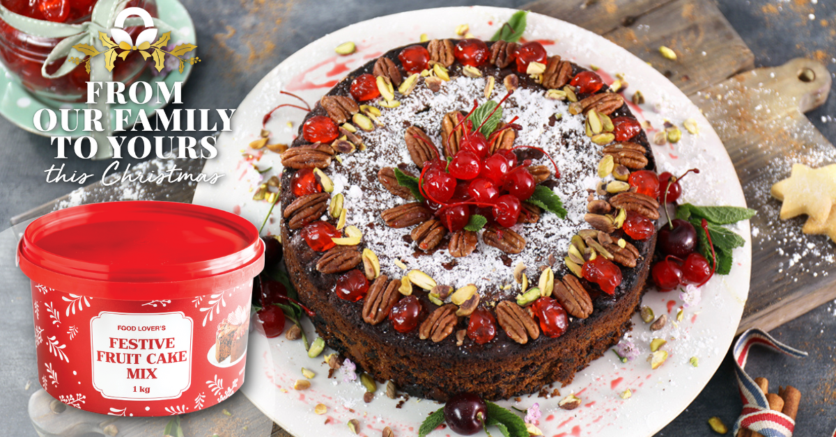 Remove the cake from the tin and decorate with cherries, pistachios and pecan nuts.