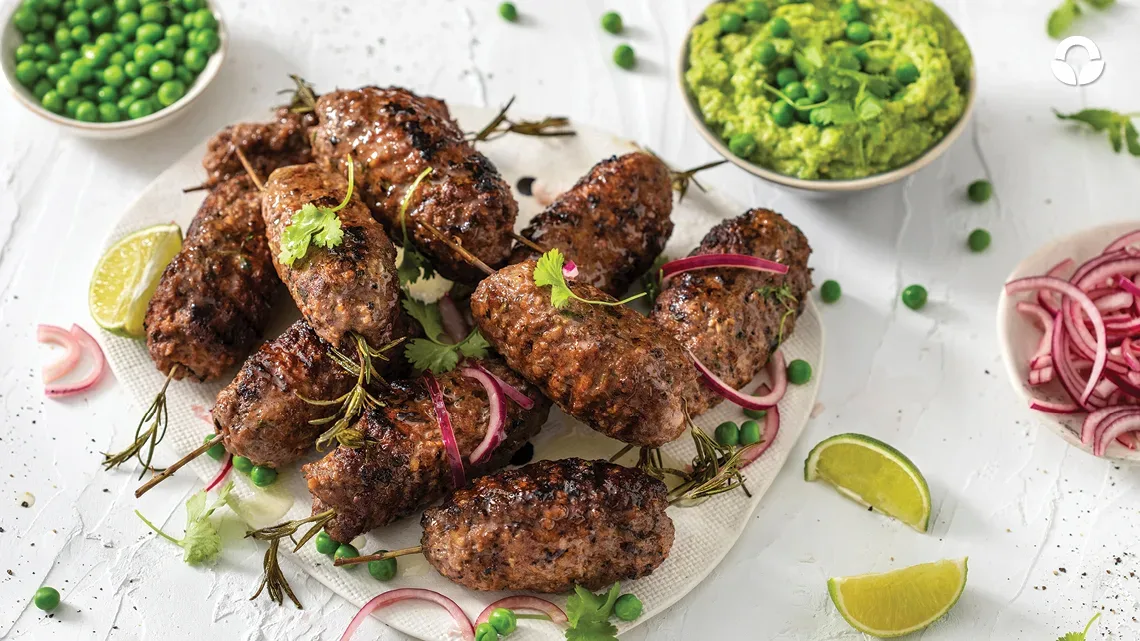 Pack these beef koftas paired with pea & coriander hummus in your picnic basket for the weekend or serve at your harvest-style feast with friend and family! You could also roll them into balls and make meatballs paired with a delicious green hummus.
