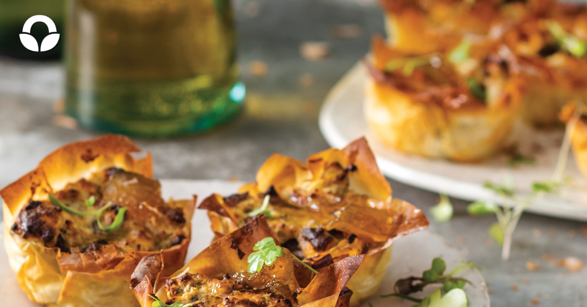 Preheat the oven to 170°C. Grease a muffin tray and place a sheet of phyllo pastry on your work surface.