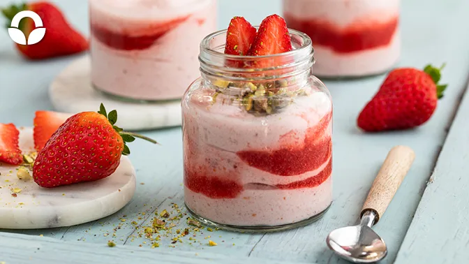 Layer the mousse in glass jars with the strawberry purée that was set aside.