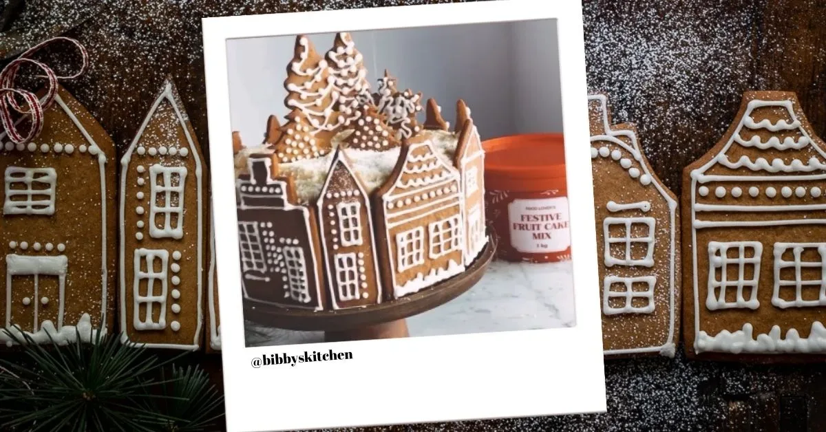 This incredible showstopper of a Christmas dessert brought to you by Bibby’s Kitchen; a Gingerbread Village Christmas Cake. This recipe uses the famous Food Lover’s Festive Fruit Cake Mix (a.k.a the red bucket).