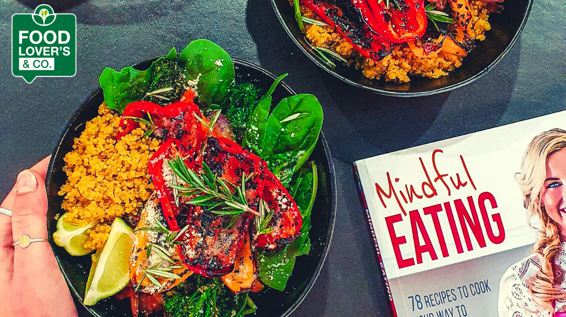 To assemble the salad, place the quino in a serving bowl, add the baby spinach, top with the broccoli & caramelized onion mix, the roasted red peppers.