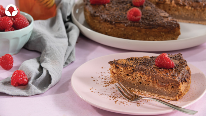 Line a 28cm springform cake tin with baking paper and non-stick baking spray.