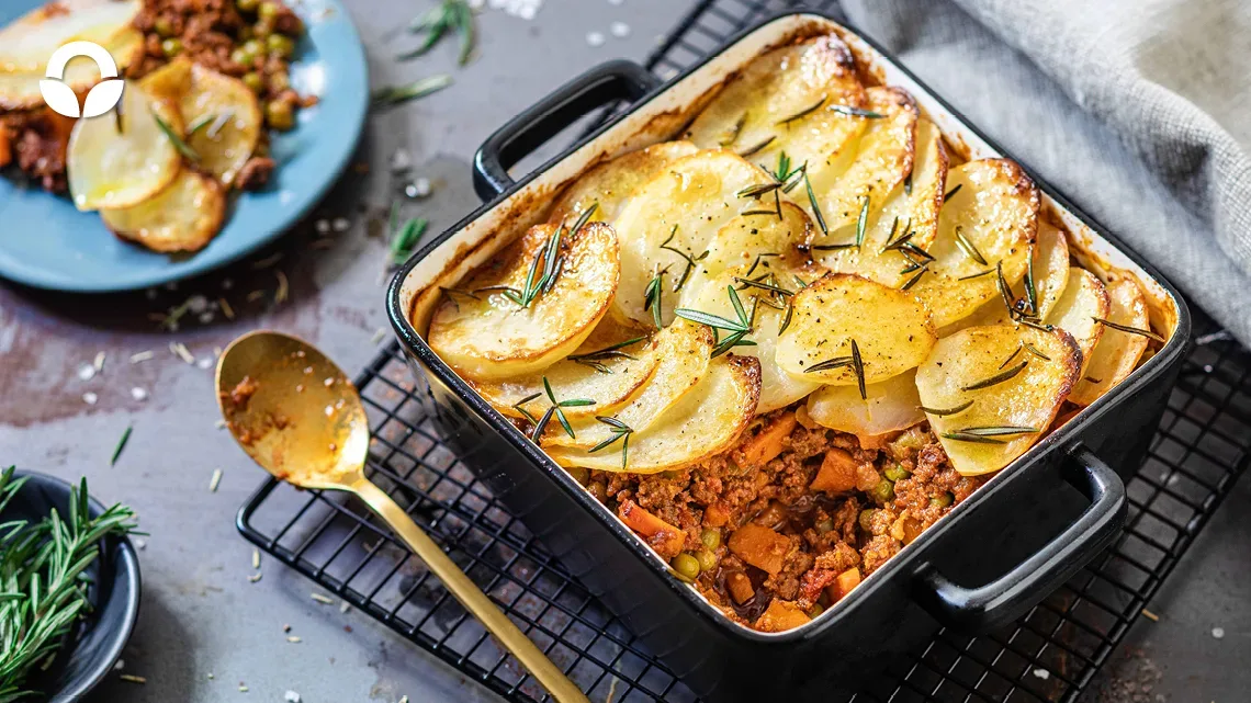 A simple step to modernise your regular cottage pie into a little more ‘luxury’. Simply topped with sliced potatoes (like a gratin) instead of mashed potatoes make it crispy and delicious. Not only do the sliced potatoes look good, are tastier & crispier but they are also a lot easy and time-saving.