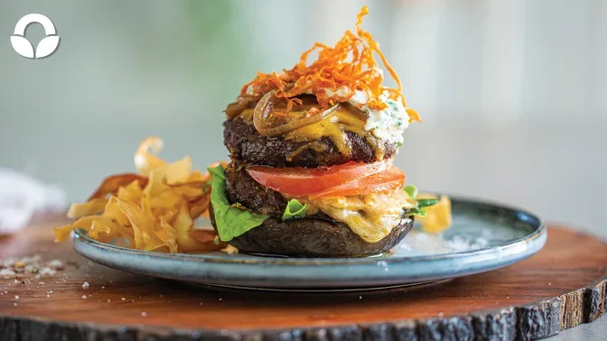 Have you tried our Wagyu burger patties yet?! Make the most out of their flavour and enjoy them ‘bunless’! A lower-carb, healther Wagyu burger, using a portobello mushroom as the bun. Paired with the most delicious shoestring fried carrots & your fave toppings – you could also zap these in the air fryer instead of frying them in oil.