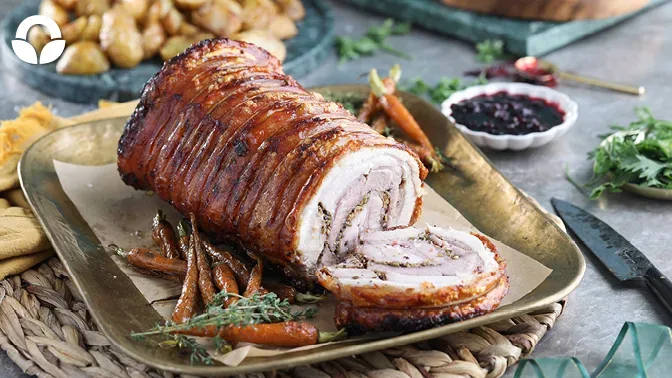 The Food Lover’s festive roast porchetta is rolled and ready to roast,