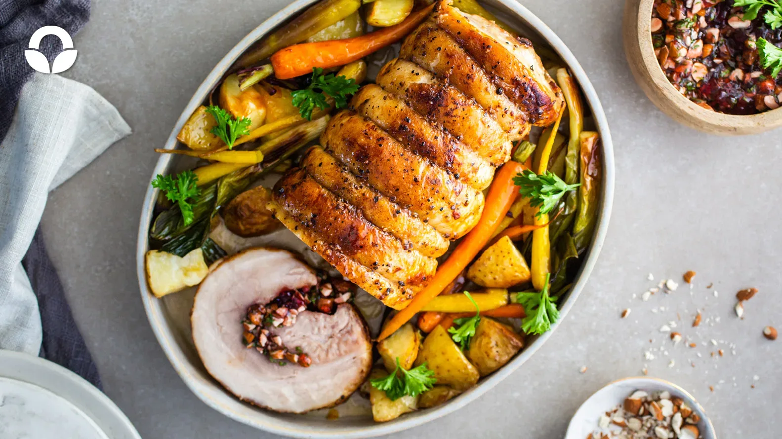 Preheat the oven to 200°C. Butterfly the pork roast, or ask your butcher to do it for you.
