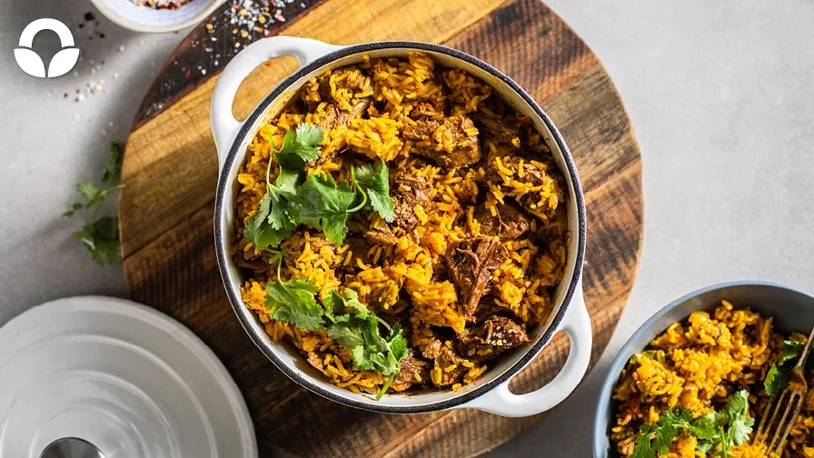 We used our leftover roast lamb in this simple, but moreish Breyani-style recipe (a bit more of a Pilau or Akhni); a blend of aromatic spices, toasted and cooked with rice. Use the base of this recipe when you have any leftover meat or roast, and toss the meat through, like leftover roast lamb or chicken! Or, if you want a vegetarian version simply toss through some lentils!
