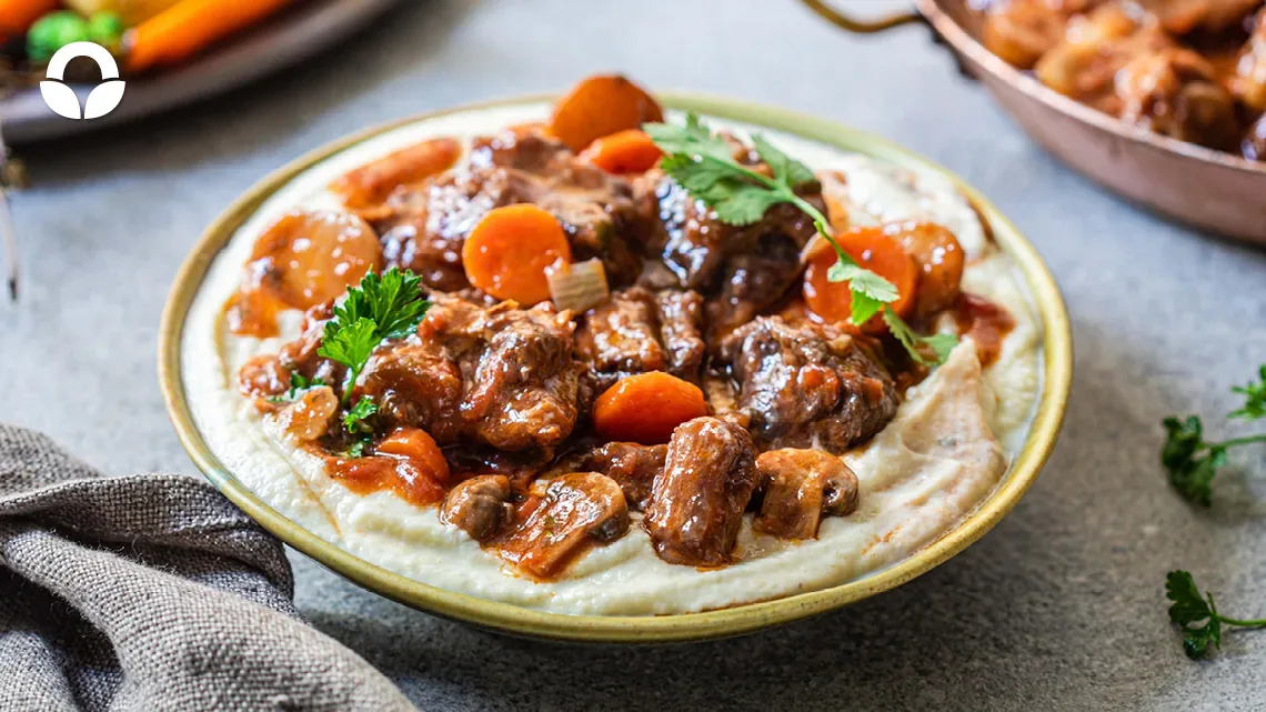 Enjoy a glass of red wine with this fall off the bone, slow-cooked red wine Oxtail paired with a low-carb Cauli & Cannellini Bean Mash along with some wholesome roasted garlic vegetables. The perfect stew to warm up this Winter.