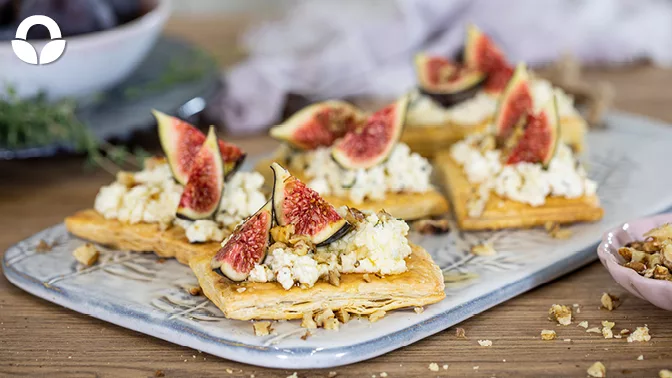 Indulge in the sweet and savoury flavours of our Homemade Ricotta, Fresh Fig and Thyme Tartlets. Made with creamy homemade ricotta, roasted walnuts, and fresh figs, these tartlets perfectly combine tangy and sweet. The flaky puff pastry and thyme add an extra layer of depth to this delectable treat.