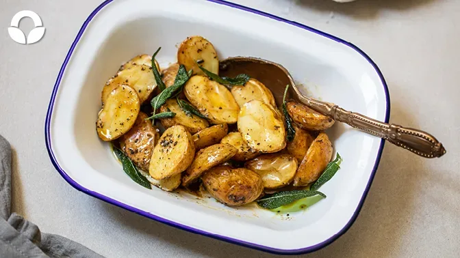 Do you want to be the one in the family that is famous for those mouth-watering potatoes?! One of these 4 ways will make your roasted potatoes fit for a king, and you will be crowned the roasted potato hero! Add your famous recipe to that family cookbook to pass on to the generations. Be the one in the family that is famous for those mouth-watering potatoes! These sage & butter roasted baby potatoes are to die for!