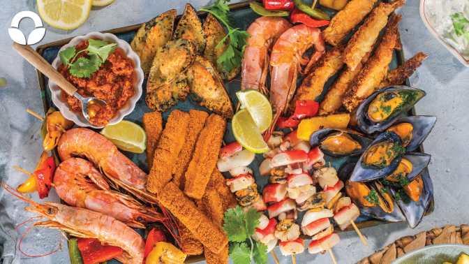 - Bake or air fry the crumbed garlic half-shell mussels and panko prawns for about 10-12 minutes at 200°C.
