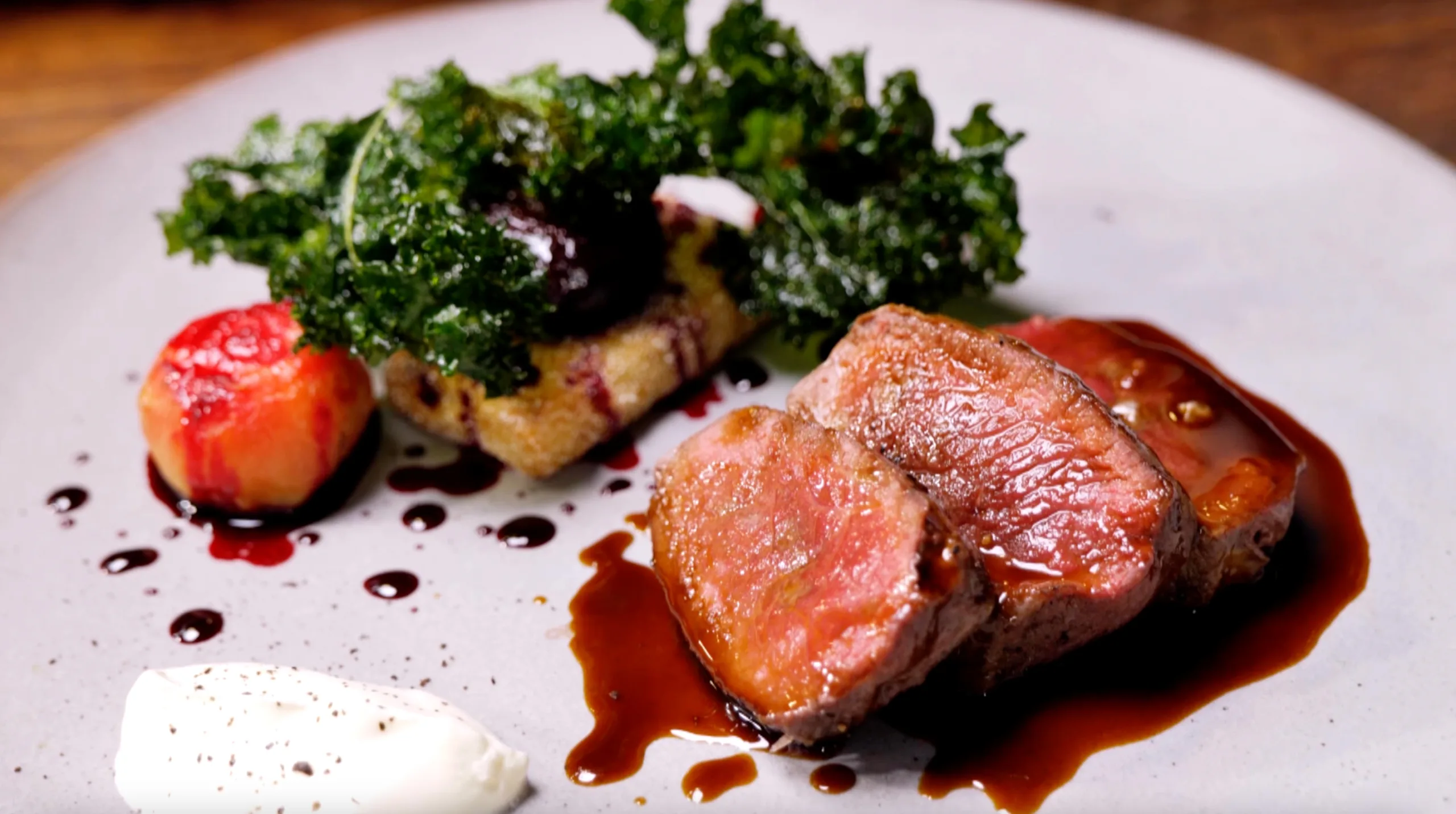 Reduce the red wine and vinegar first then add the beetroot juice and glucose and bring it down to a glaze.