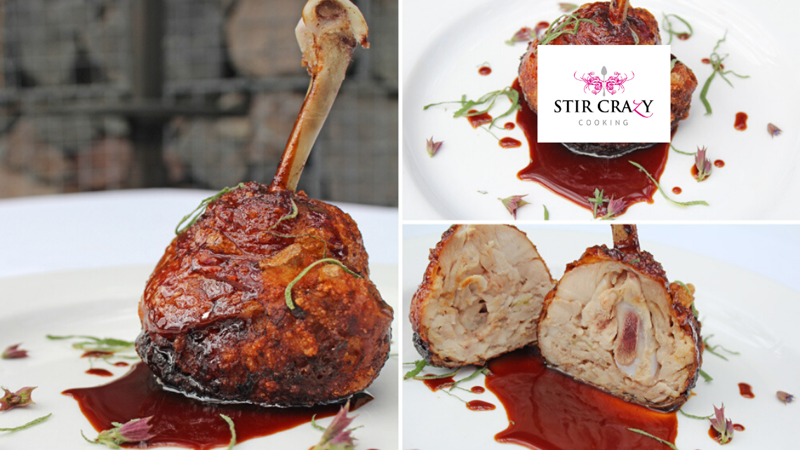 Return to the chicken and remover the sharp ‘thorn’ bone from the leg, keeping the meat intact.
