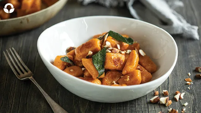 This dish is a great way to showcase the versatility of sweet potatoes. Combining sweet potato gnocchi, crispy sage, and nutty burnt butter creates a harmonious blend of flavours and textures.