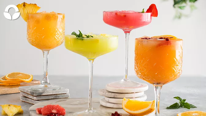 For the Tropika Tropical: Pineapple wedges, to garnish 60ml gooseberries, halved